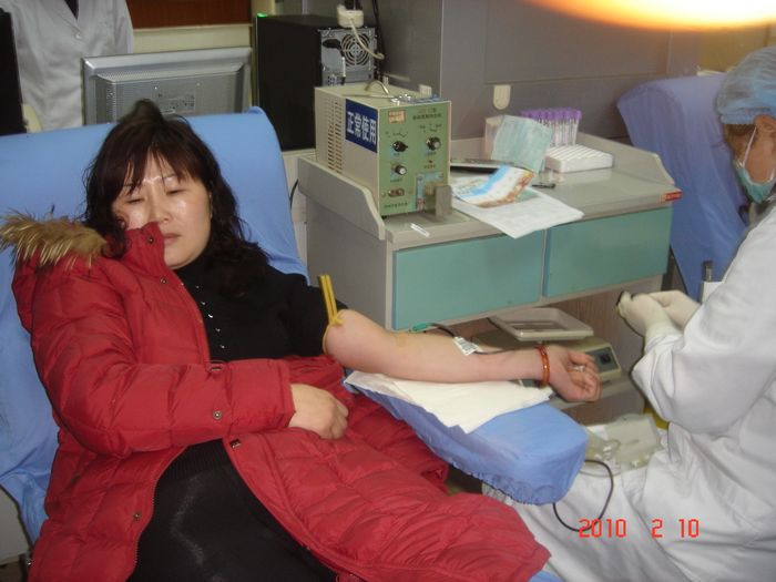 2010年2月10日清晨,細雨濛濛,公司一行員工在公司副總經(jīng)理蔣菀莉的帶領下,來到衛(wèi)生大廈獻血中心,盡管天公不做美,雨水淋濕了員工們的衣服,但是他們獻血的熱情不減,愛心依然,看,一張張笑容寫在臉上。
