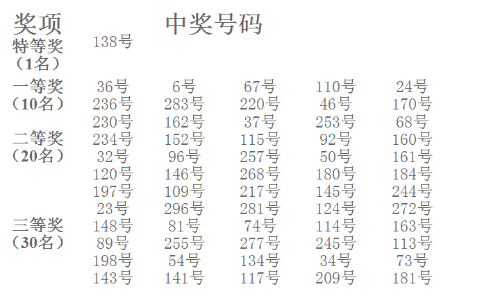 公司2010年度抽獎活動幸運號碼公布