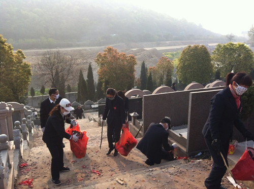 2013年4月4日,金太陽義工社在得知清明祭祀人員多、環(huán)境不理想的消息后,社員們自發(fā)要求放棄休息的時間前往陵園,為城市環(huán)境獻(xiàn)出自己的一份力量。