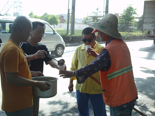 在慈湖高新區(qū)道路,我們的公司管理主任每天都煮好綠豆湯沿路送給在道路上辛苦工作的保潔員們,交代大家一定要注意防暑降溫,并調(diào)整工作時間,盡量避免在日間氣溫最高時上路。